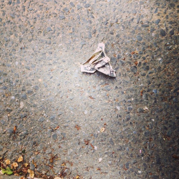 May 13, 2014 by guttercheddar - 0 comments My girl G-Rock found six bones on the floor of the ladies baño at bunk bar in Portland Oregon. Gotta watch those loose pocket bills.