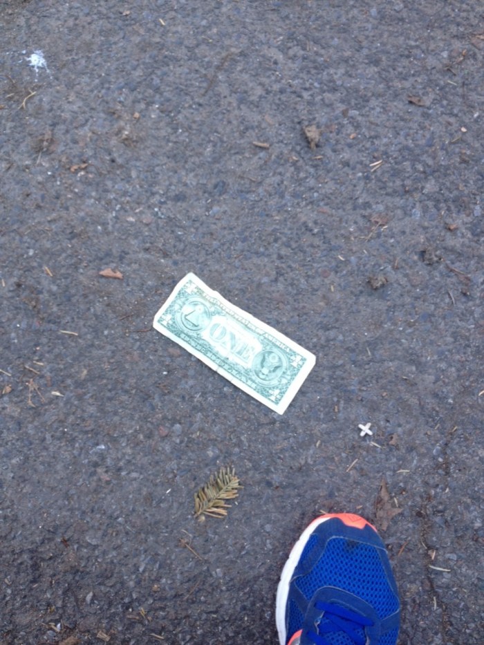 Single dollar found in a tree lawn space. What’s a tree lawn you ask? Look it up.